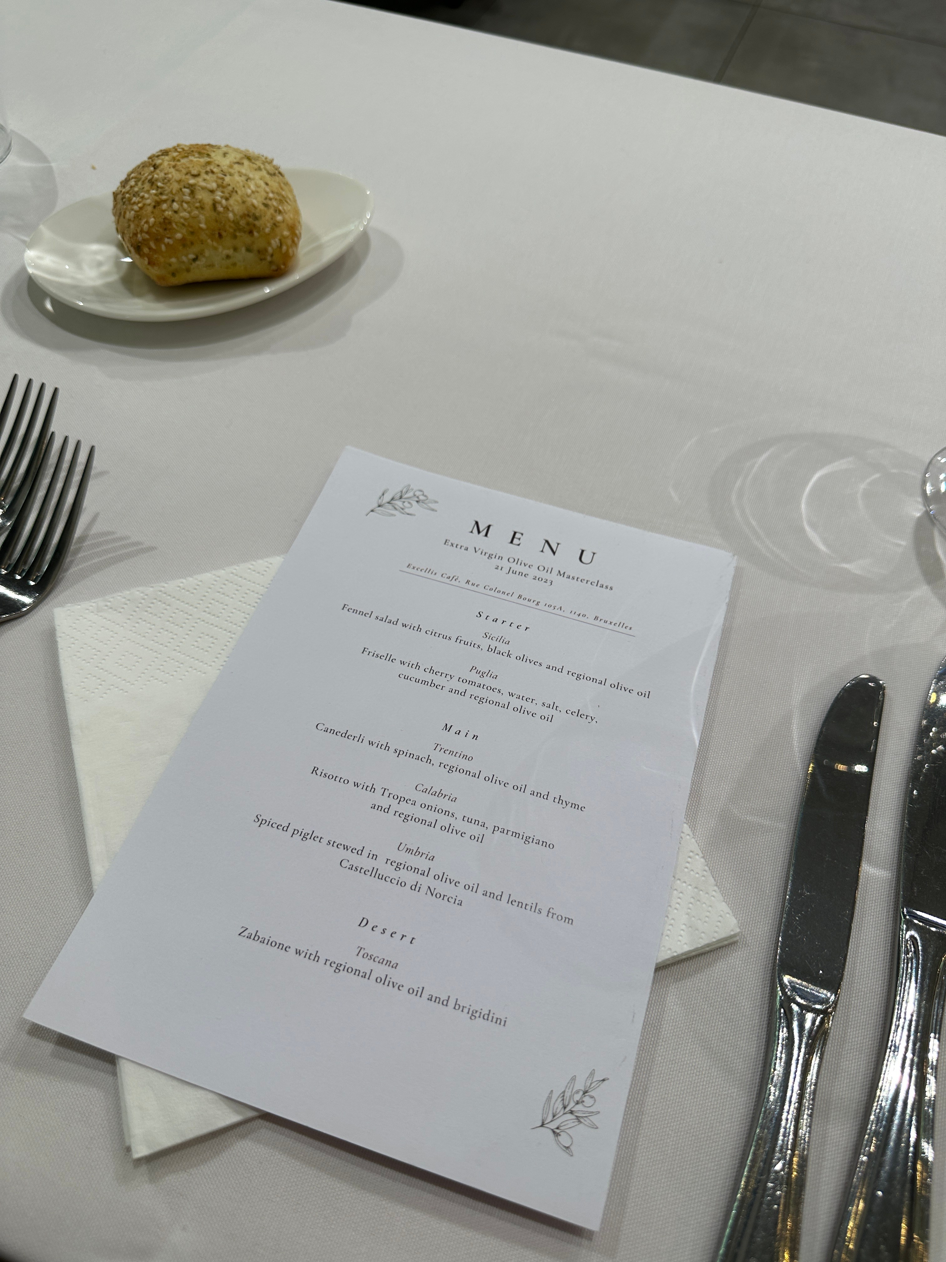 La semaine dernière, nous avons eu la chance d’assister à un cours sur l’huile d’olive donné par Marcello Scoccia, chef de panel ONAOO (Organisation nationale des dégustateurs d’huile d’olive), et organisé par la Italian Trade agency de Bruxelles.