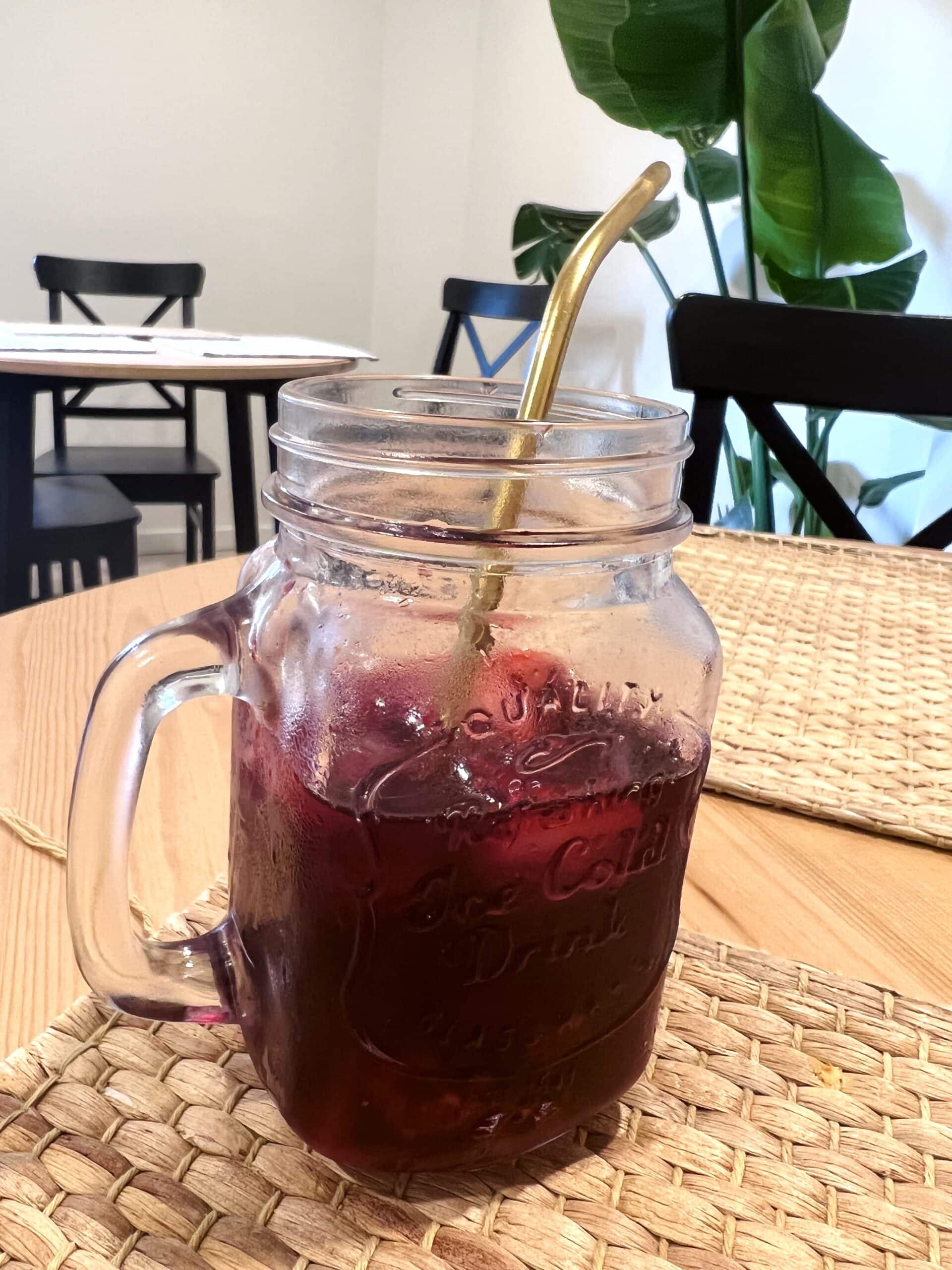Nous avons testé la tartine « Burrata » avec pesto de pistache maison, tomates cerises, coppa, roquette ainsi que la tartine « Croustiti » avec une délicieuse escalope de poulet pané, chili mayo, bacon, emmenthal, tomates, salade et oignons rouges. Pour accompagner ces plats, nous avons pris le thé glacé maison.
