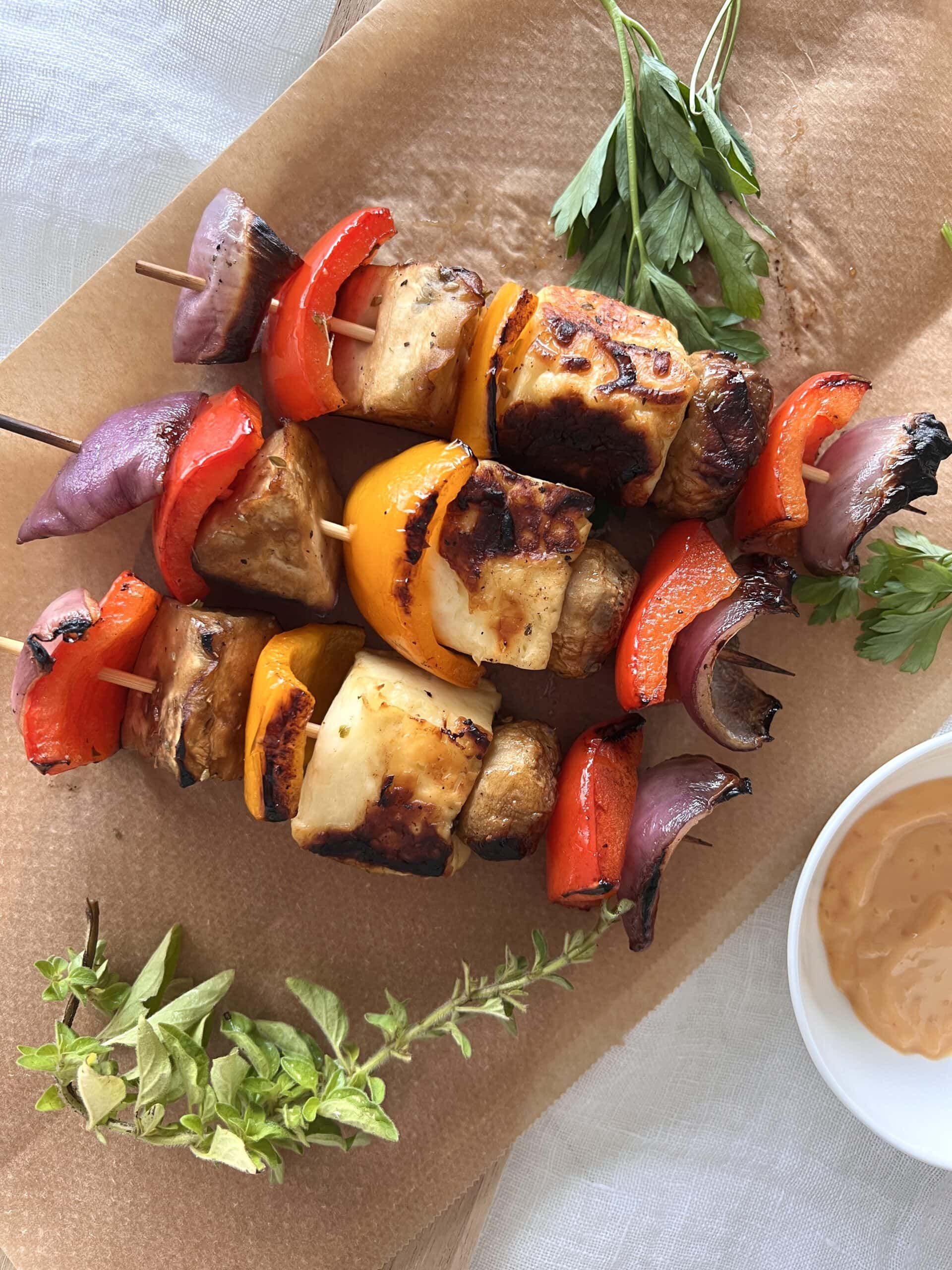 Brochettes d’halloumi et légumes du soleil