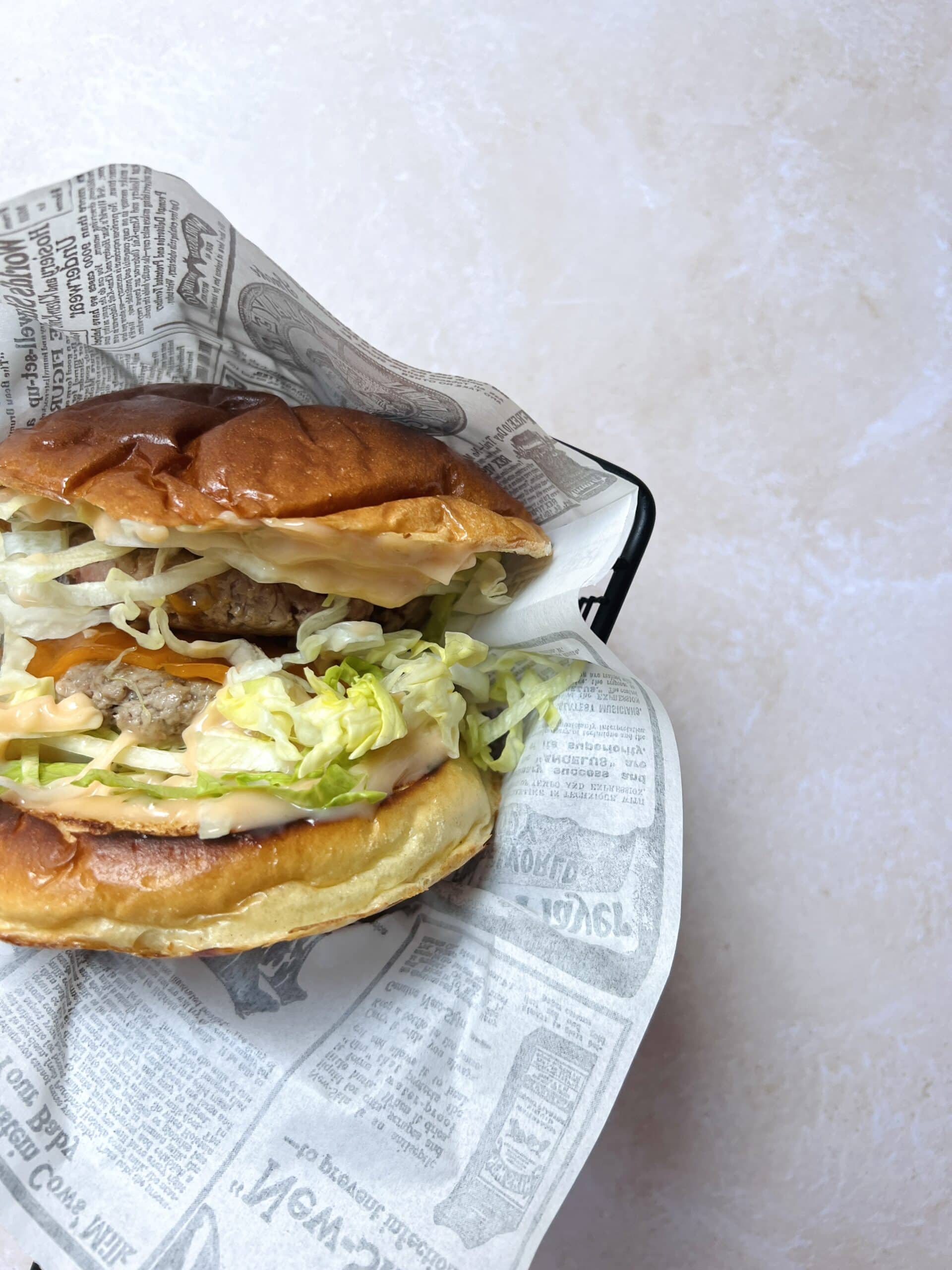 Le burger Giant est un hamburger d’une célèbre chaîne de fastfood. Chaque bouchée de ce burger est un véritable bonheur. Nous connaissons tous ses ingrédients phares : du pain, deux steaks de boeuf, une tranche de cheddar fondu, des oignons et de la scarole. Mais le plaisir ne s’arrête pas là. Le tout est accompagné d’une sauce Giant dont seul Quick a le secret. J’ai essayé de la reproduire rien que pour vous. N’hésitez pas à me dire si vous trouvez que cette recette ressemble à la vraie !