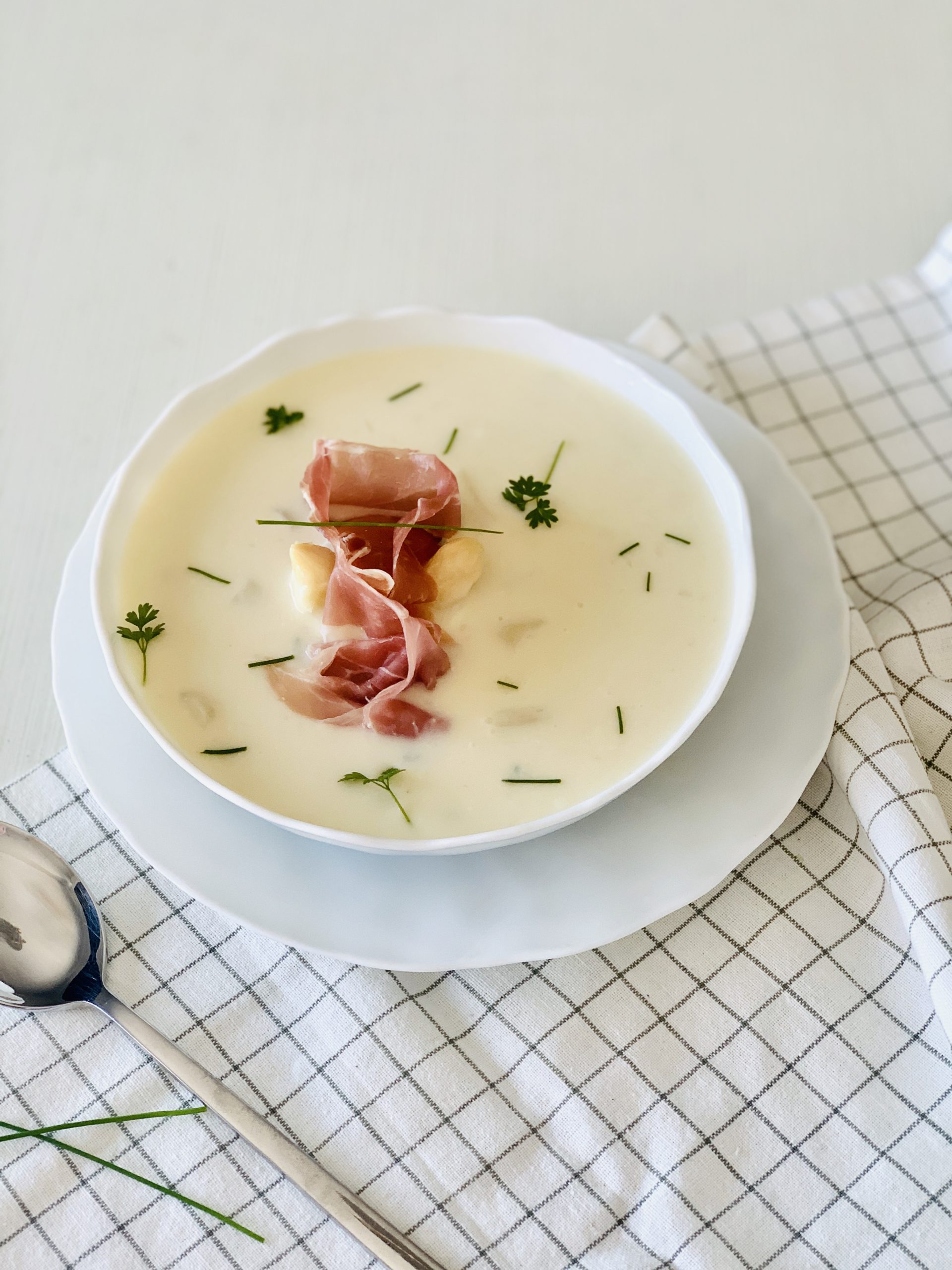 Avril, mois des bonnes asperges belges ! On en profite et on file en cuisine, un bon velouté ça vous dit ? Avec le jambon Ganda, c’est encore plus gourmand ! Cette crème d’asperges est une recette facile avec des produits de saison. Une touche gourmande, en apéro, en entrée ou en plat. Régalez-vous et surtout mangez bien !