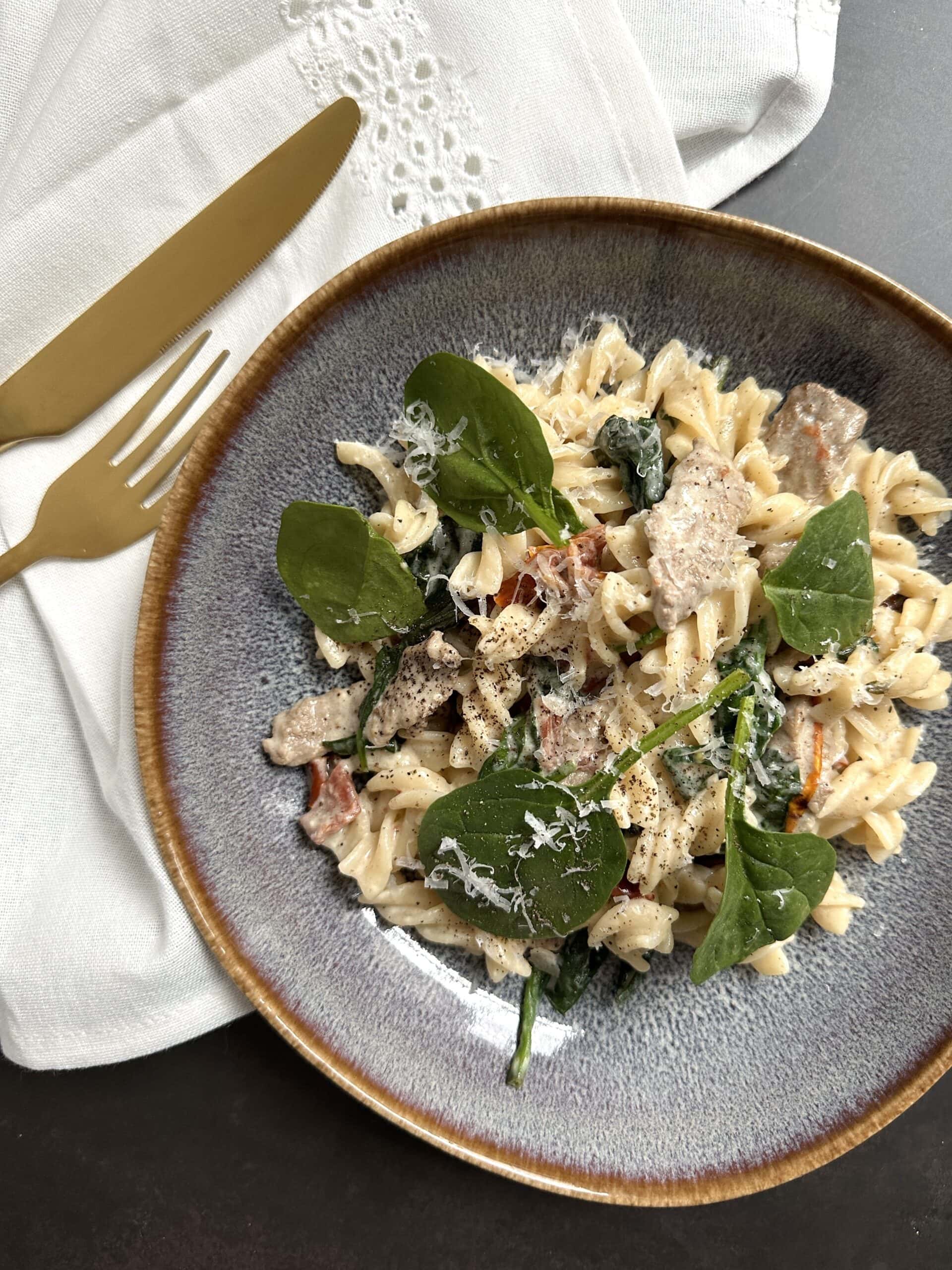 Je vous partage une recette de pâtes avec des ingrédients que j’adore : du sauté de veau, de la feta et des tomates séchées. Ces dernières sont parfaites pour vous permettre de manger des tomates quand ce n’est pas la saison.