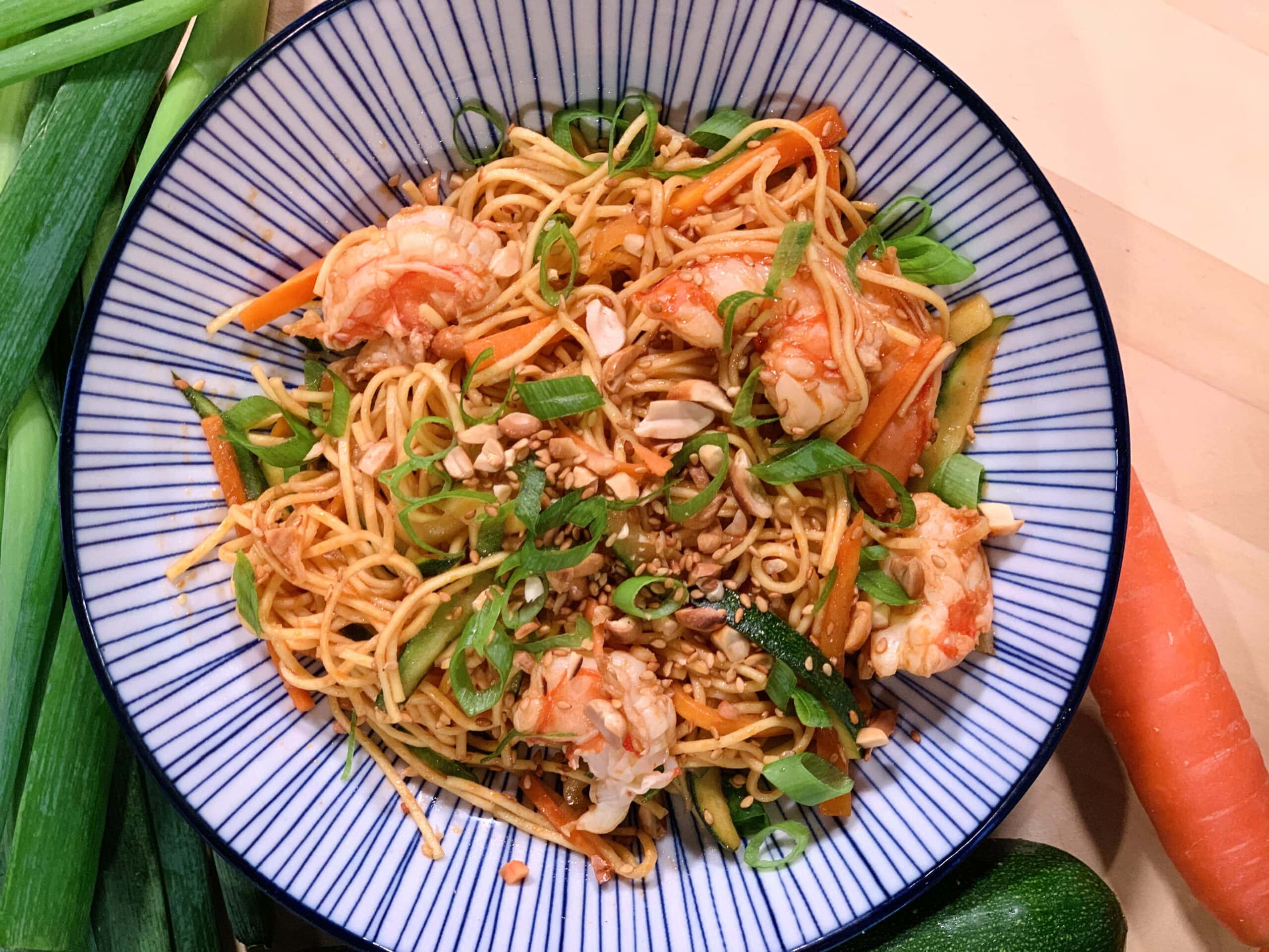 Quoi de mieux qu’un bon plat de nouilles pour se réconforter après une longue journée de travail ? Ca tombe bien, voici une recette gourmande aux légumes croquants et aux crevettes que vous pouvez décliner au gré de vos envies. Qui plus est, avec des ingrédients que vous pourrez retrouver facilement dans vos supermarchés préférés. Envie d’évasion ? Découvrez une recette accessible qui va vous faire voyager à l’autre bout du monde. Ca vous fait rêver ? Allez, c’est parti !