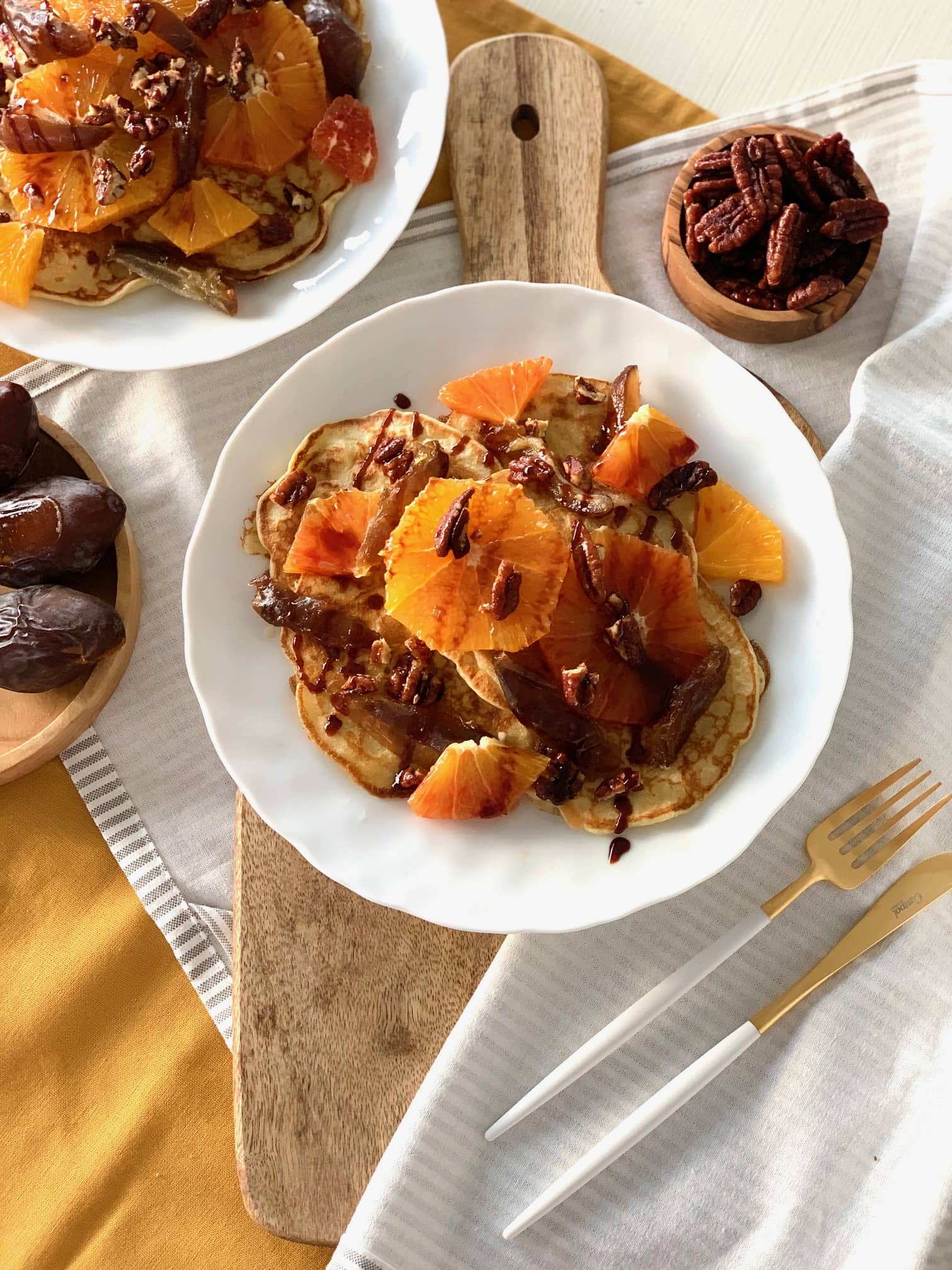 La saison des oranges sanguines est courte mais elle arrive à un moment où nous en avons le plus grand besoin. Notre corps a envie de soleil, on est en plein dans l’hiver & les vitamines sont nos meilleures amies. J’ai eu envie de vous proposer une recette de petit-dej / brunch qui rebooste aussi bien le moral que la santé ! A la maison mon homme a adoré, et il m’a même dit qu’il ne comprenait pas pourquoi on faisait des pancakes aux myrtilles tellement c’était meilleur avec les oranges. A vous de vous faire votre propre avis maintenant !