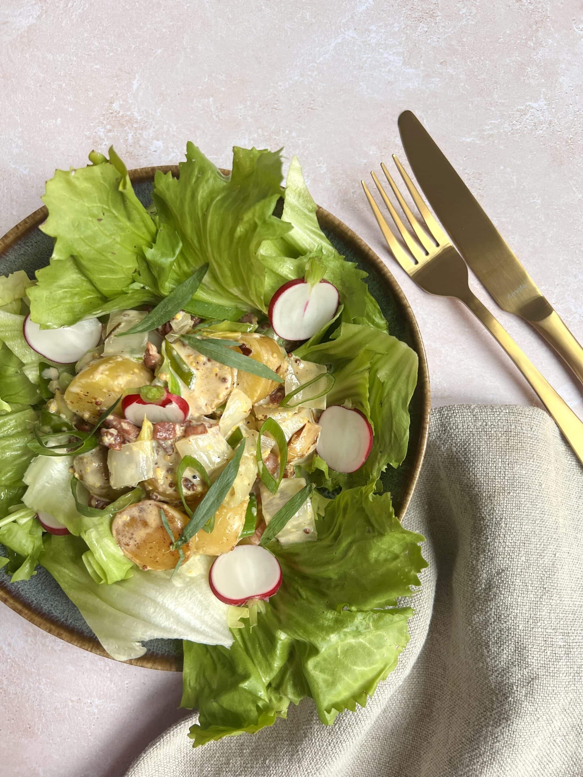 Envie d’une bonne salade d’hiver ? Je vous propose de réaliser cette recette avec des bons produits locaux et de saison. Pour réaliser cette salade gourmande aux chicons et aux lardons, j’ai sélectionné une belle scarole. Elle va apporter une touche d’amertume que j’adore.