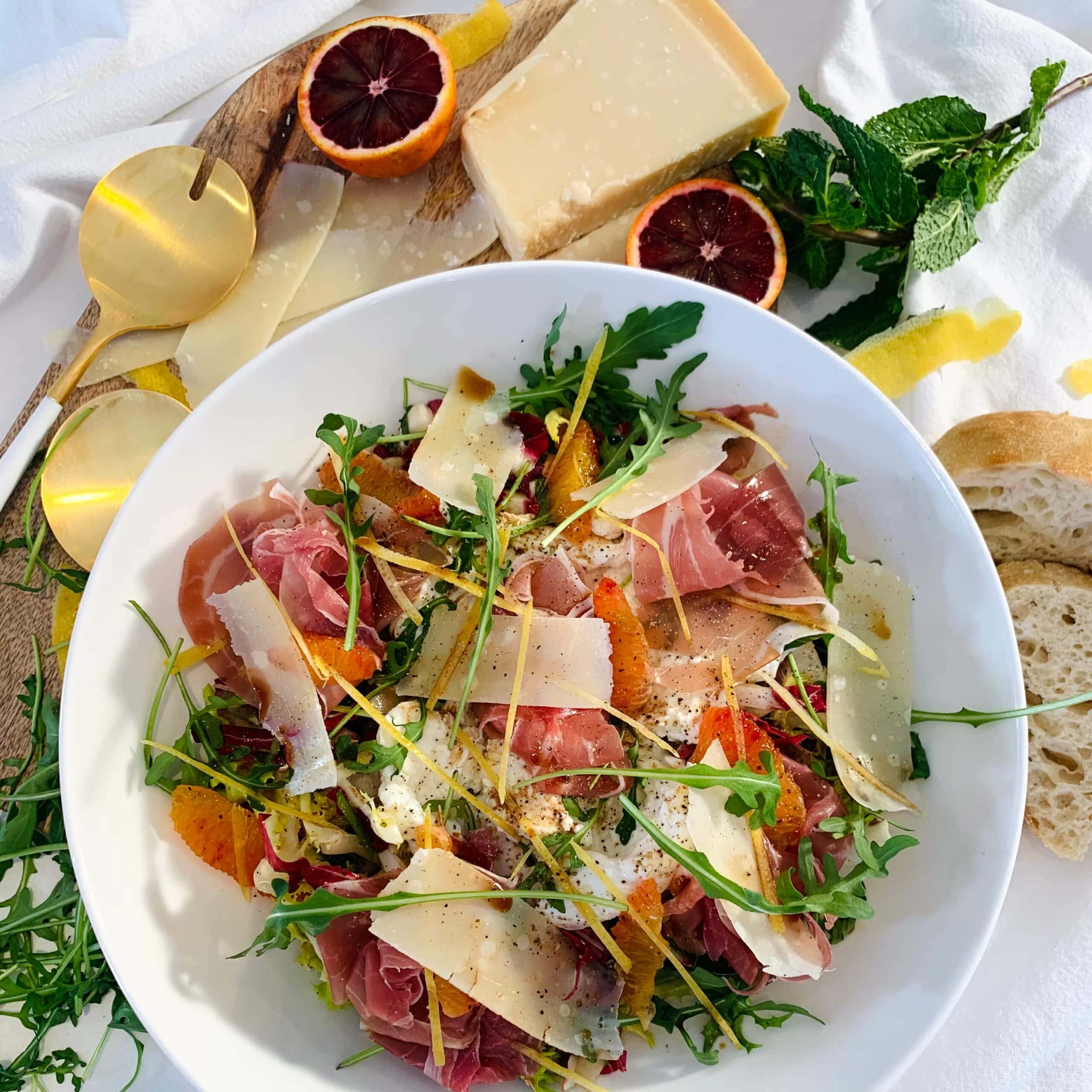 Salade d’hiver à la mozzarella, agrumes et San Daniele