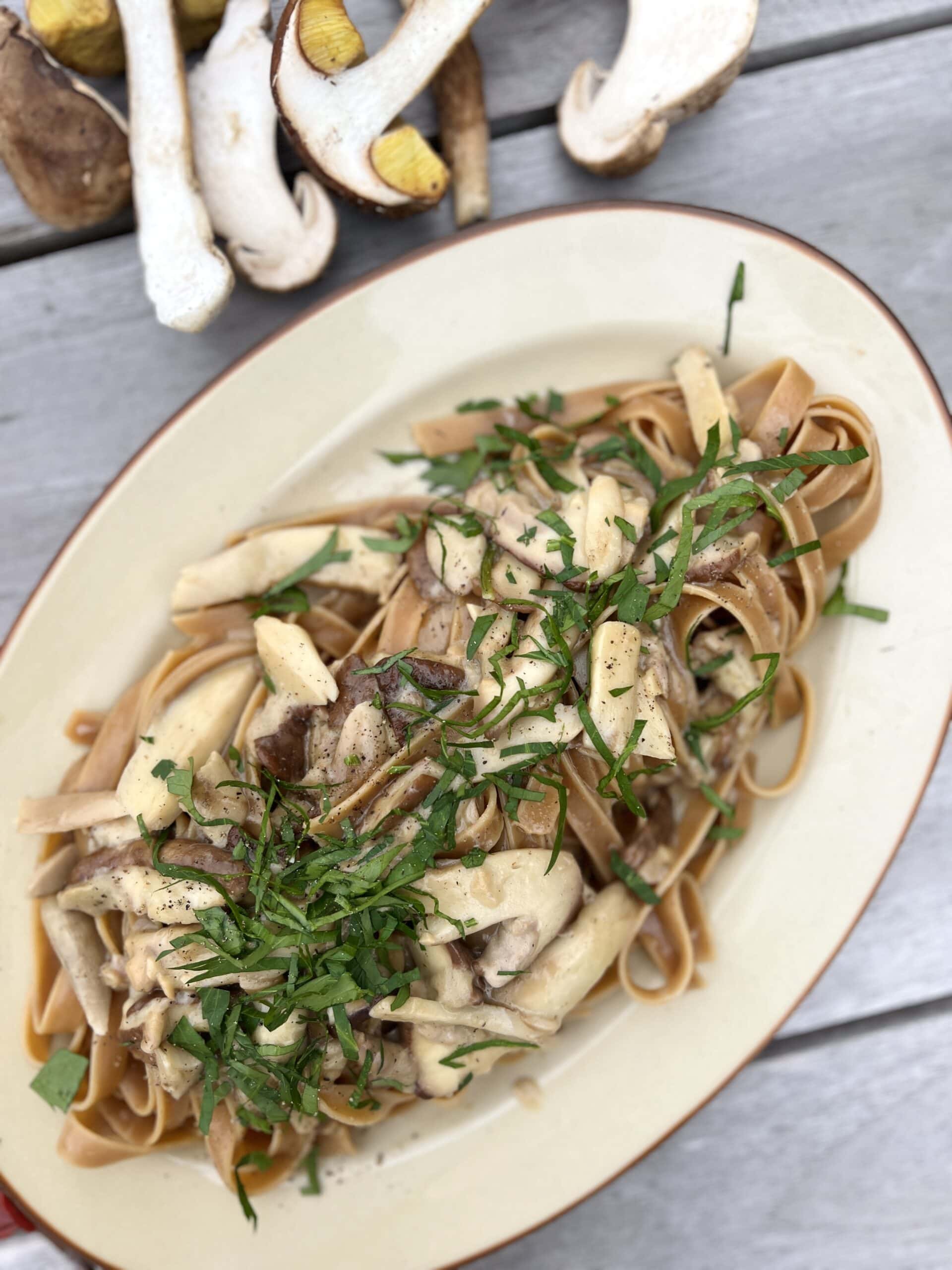 - Sortir les pâtes de l’eau, et les verser dans la préparation de cèpes avec deux louches d’eau de cuisson.