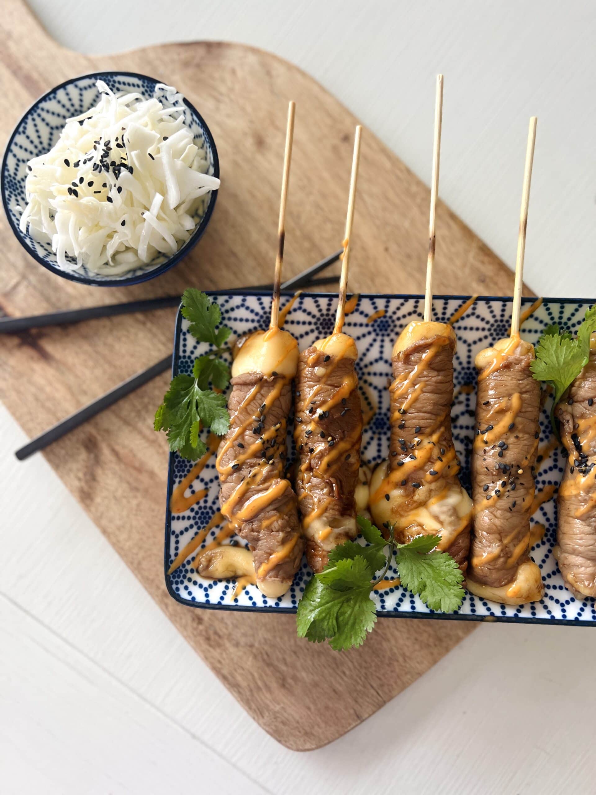 Un apéro ou une petite entrée facile et rapide ? Ne cherchez plus ! J’ai pour vous cette recette ultra gourmande : des yakitori de boeuf et de gouda. Idéal pour faire voyager vos invités dès le début du repas !